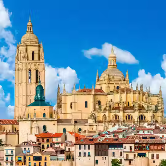 Segóvia — Conhecida pelo aqueduto romano perfeitamente preservado, pelo Alcázar que inspirou castelos da Disney e pelo tradicional cochinillo (leitão assado).